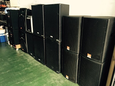 Altavoces, mesas de mezcla (analógicas y digitales), micrófonos (cable e inalámbrico), etapas de potencia, megafonía para coches, equipos portátiles a batería...